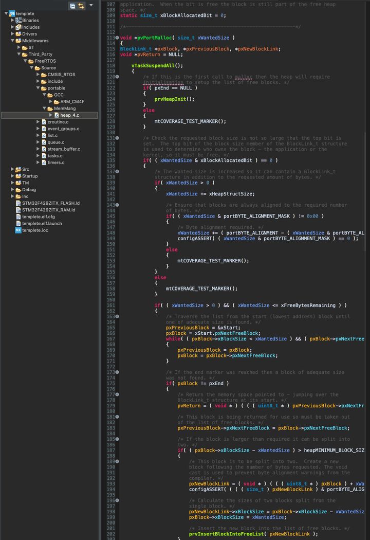 在STM32CubeIDE的项目中,内存管理默认采用了heap_4.c 作为实现方案。