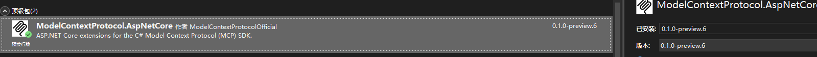 public class Program { public static void Main(string[] args) { var builder = WebApplication.CreateBuilder(args); // Add services to the container. builder.Services.AddControllers(); // Learn more about configuring Swagger/OpenAPI at https://aka.ms/aspnetcore/swashbuckle builder.Services.AddEndpointsApiExplorer(); builder.Services.AddSwaggerGen(); builder.Services.AddLogging(); builder.Services.AddMcpServer() // 注册 McpServer 相关服务 .WithTools<Tools.AddTool>(); //.WithToolsFromAssembly(); // 从程序集中扫描添加 tools var app = builder.Build(); // Configure the HTTP request pipeline. if (app.Environment.IsDevelopment()) { app.UseSwagger(); app.UseSwaggerUI(); } //app.UseAuthorization(); app.MapControllers(); app.MapMcp(); app.Run(); } }
