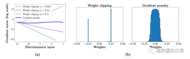 虽然 WGAN 在实验中展现了自己比原始 GAN 稳定的一面,但它依然遗留了一个问题。也就是通过 weight clipping,梯度裁剪这种方法选择的那个超参 c 对于实验结果的影响有多大?其实这个问题在原始 WGAN[7] 的论文中作者就有讨论。当 c 太大时,会出现梯度爆炸问题;过小也会导致梯度消失问题。