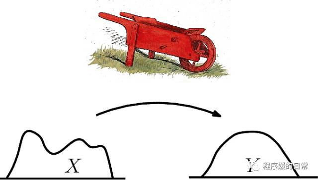 这个距离可以形象的理解为,将一个分布变成另一个分布所需要的消耗。如果用一个直观的理解就是,把一个沙堆推到另一个地方,形成另一堆可能长得不一样的沙堆所需要的“距离”。而这种“转变”并不是唯一的,所以很可能有些“路径”消耗大,有些消耗小。用比较严谨的说法,Wasserstein 距离表示的是“最有规划路径”下的最短距离。