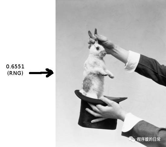 那么这个非常吸引人的 GAN 是什么样呢。其实 GAN 最初让人“哇”的地方在于,作为一个生成模型,GAN 就像魔术师变魔术一样,只需要一个噪音(噪音向量),就可以生成一只兔子!