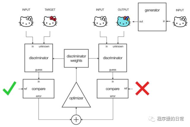 而想要成为一个成功的欺骗观众的魔术师并不容易,GAN 也是在不断地失败、穿帮、磨练技艺中成长起来的!要知道,观众们见过很多兔子,如果变出来的东西根本不像兔子,或者变不出来,这个魔术就很失败,观众就不会买账。在这样反复的练习中,作为魔术师的 GAN 扮演的是生成模型的角色,目的是要不断地提高自己的魔术水平,从而变出更活灵活现的兔子;而观众扮演的是一种判别模型的角色,目的是考察和激励魔术师提高自己的水平。但是这种激励是通过批评或者惩罚的方式完成的。