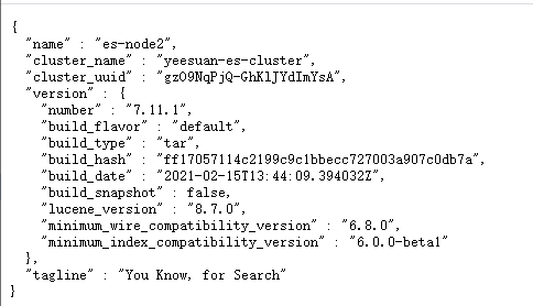 # 访问一下,出现下图就表示成功了。 11.249.2.11:9200 11.249.2.12:9200 11.249.2.13:9200