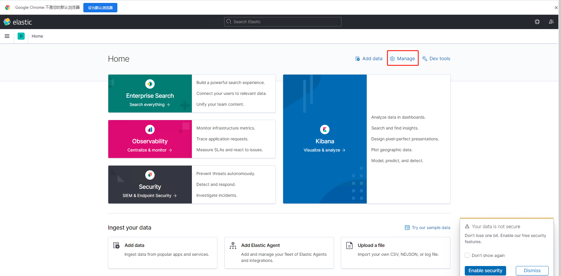 浏览器访问 http://10.249.3.12:5601/app/home#/