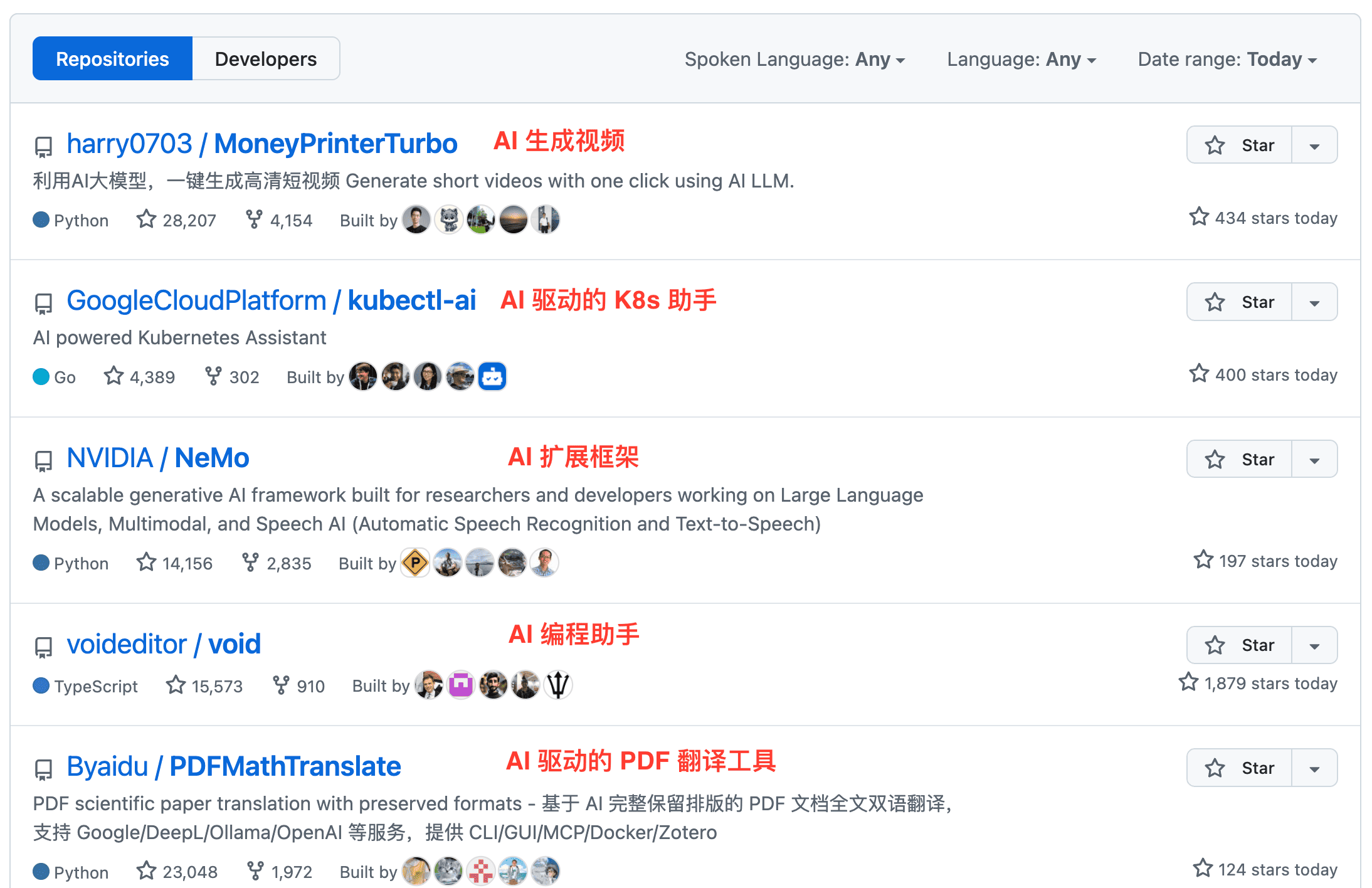 随便打开这几天的 GitHub 热榜看看,AI 相关的项目,无论是 AI 模型、开发框架,还是各种有趣的 AI 应用,霸榜简直成了常态。