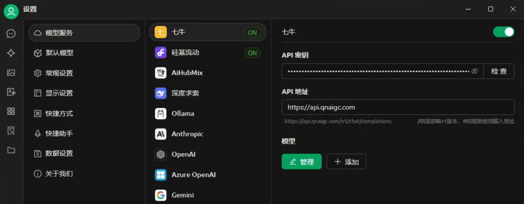 即使你目前对 AI 不太熟悉,或者只是想快速体验 AI 大模型的能力,也可以轻松上手。许多优秀的开源 LLM 桌面客户端,比如 Cherry Studio、NextChat 等,提供容易上手的界面。它们支持配置自定义的 API 接口,结合七牛云提供的 AI 大模型推理服务免费额度,无需复杂配置,即可轻松体验多种主流大模型。