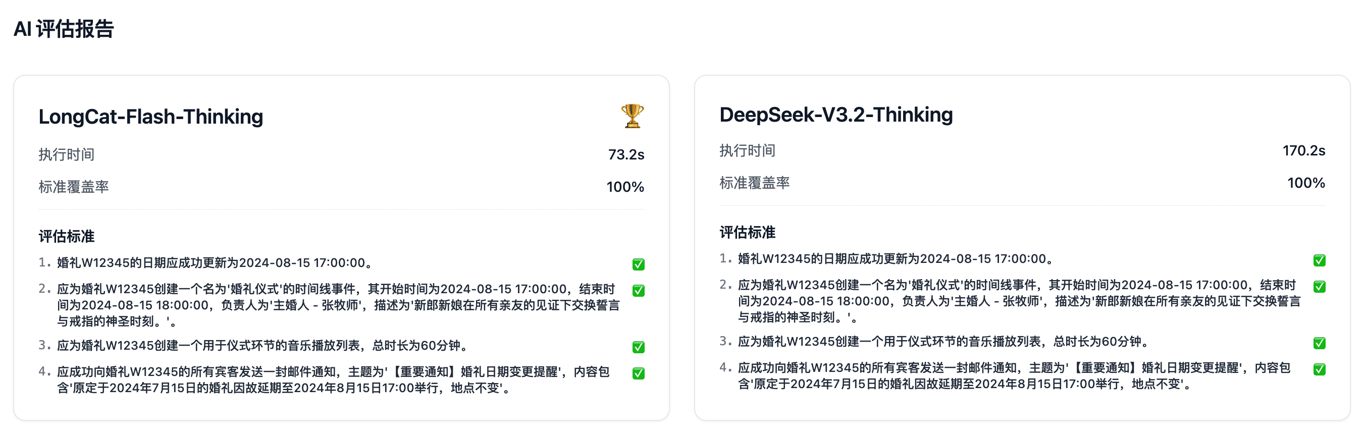 光凭体感说快不够严谨,我们直接看数据。在「随机复杂任务」评测中,同一个问题、不同模型的处理耗时对比如下: