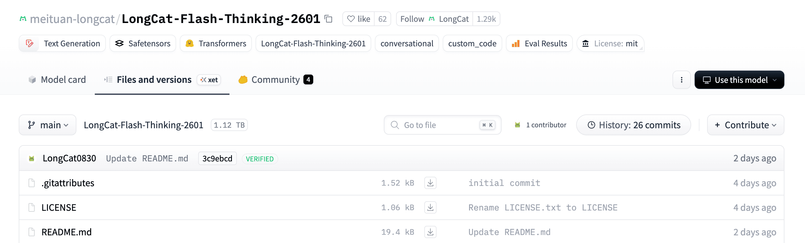 - Hugging Face:https://huggingface.co/meituan-longcat/LongCat-Flash-Thinking-2601