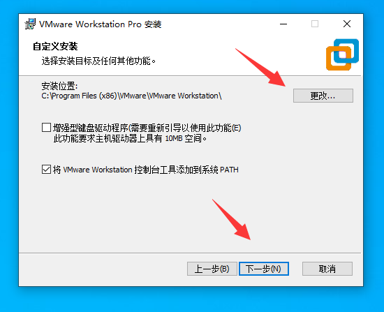 五、这里安装位置可以自定义 这里我默认安装在C盘 就不用设置位置了 如果需要更改位置选择 更改选择安装位置之后确认 点击下一步