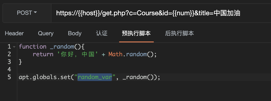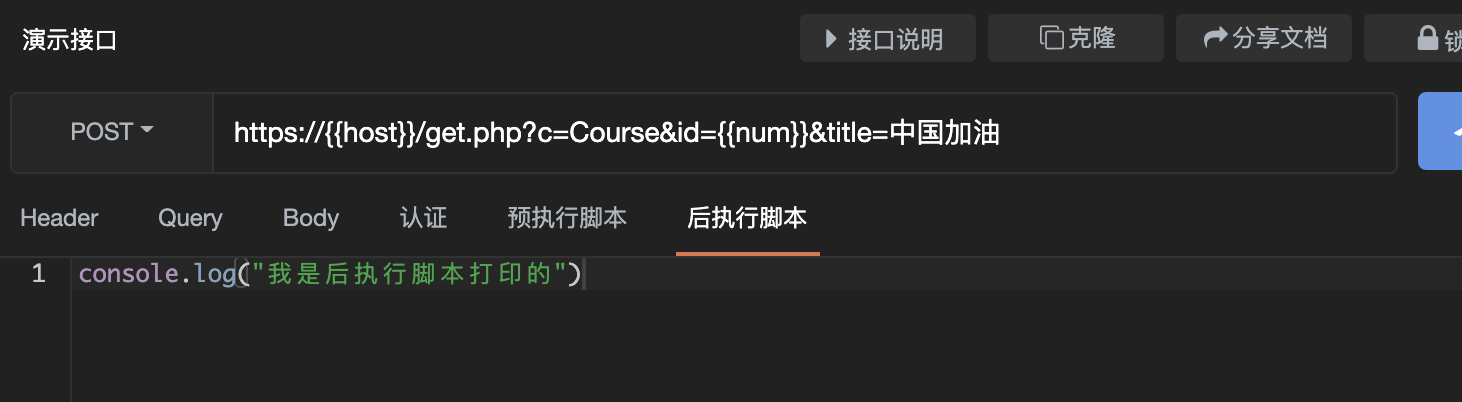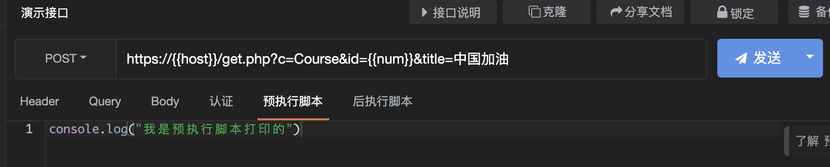 这个就需要使用apipost自带的脚本功能,有预执行脚本和后执行脚本