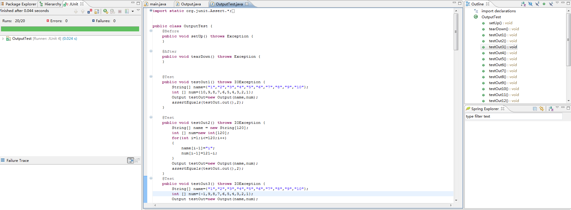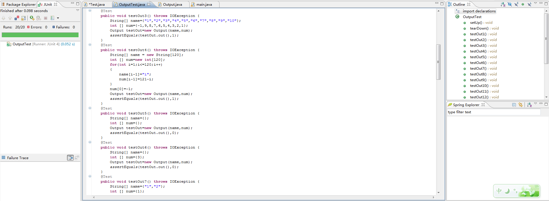 此处的错误统计是小组成员所有的错误我编写的output类出现的错误有:
