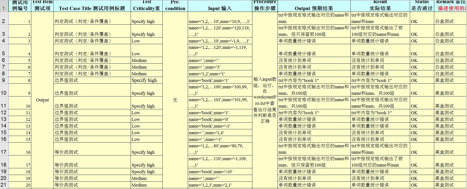 20个测试用例全部通过,说明被测模块可靠性很高。由于用的是前面设计的测试用例,因此测试按照了黑盒方法和白盒方法共同去验证,所以测试的完备性也很高。