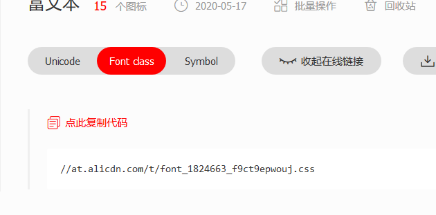 第一步:下载icon样式(通过阿里巴巴库生成在线css)