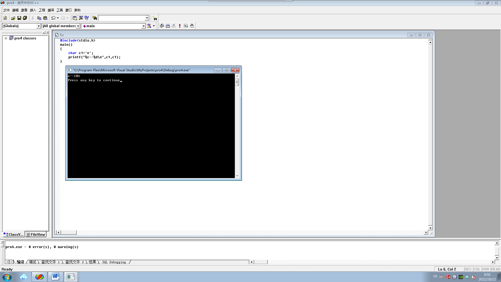 9.编写程序,定义一个字符型变量CI,并赋值,并输出字符及相应的ASCII码。