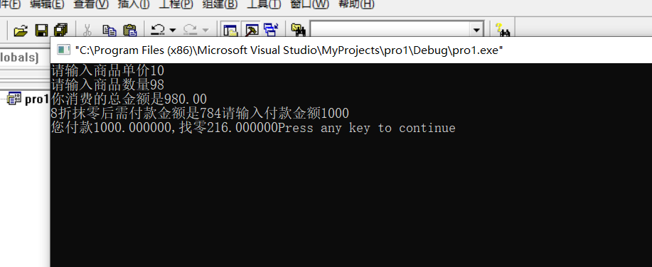 6.超市购物结算(输入单价,数量,计算总金额,打八折,抹零,计算折后价,输入付款金额,计算找零)