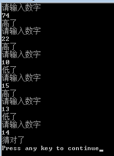 printf("低了\n");