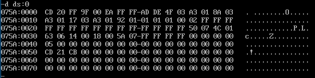 2:用debug查看psp的内容,验证头两个字节是否为:cd 20