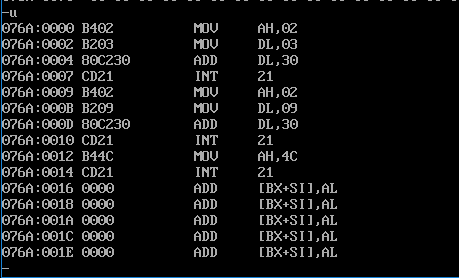 3:使用u命令对t1.exe进行反汇编