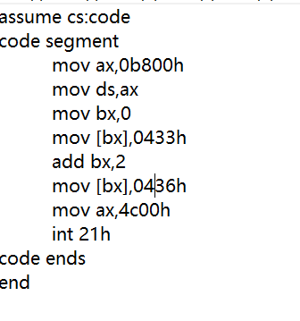 2:将代码中的0433h改为0432h 0436h改为0439h,然后进行汇编、连接、运行、调试