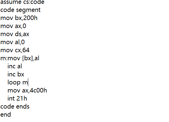2.综合使用loop,[bx],编写完整汇编源程序,实现向内存0:200到0:23f依次传送数据0到63(3fh)