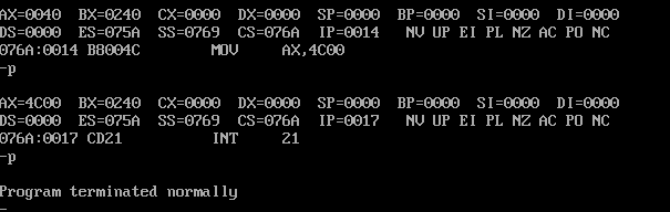 结果:复制的是:mov ax,4c00h前的指令,但未能得到正确字节数