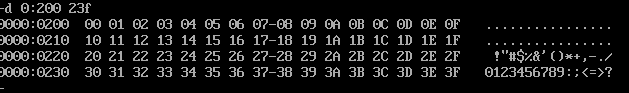 运行完使用d命令,按照要求查看内存0:200到0:23f中的数据