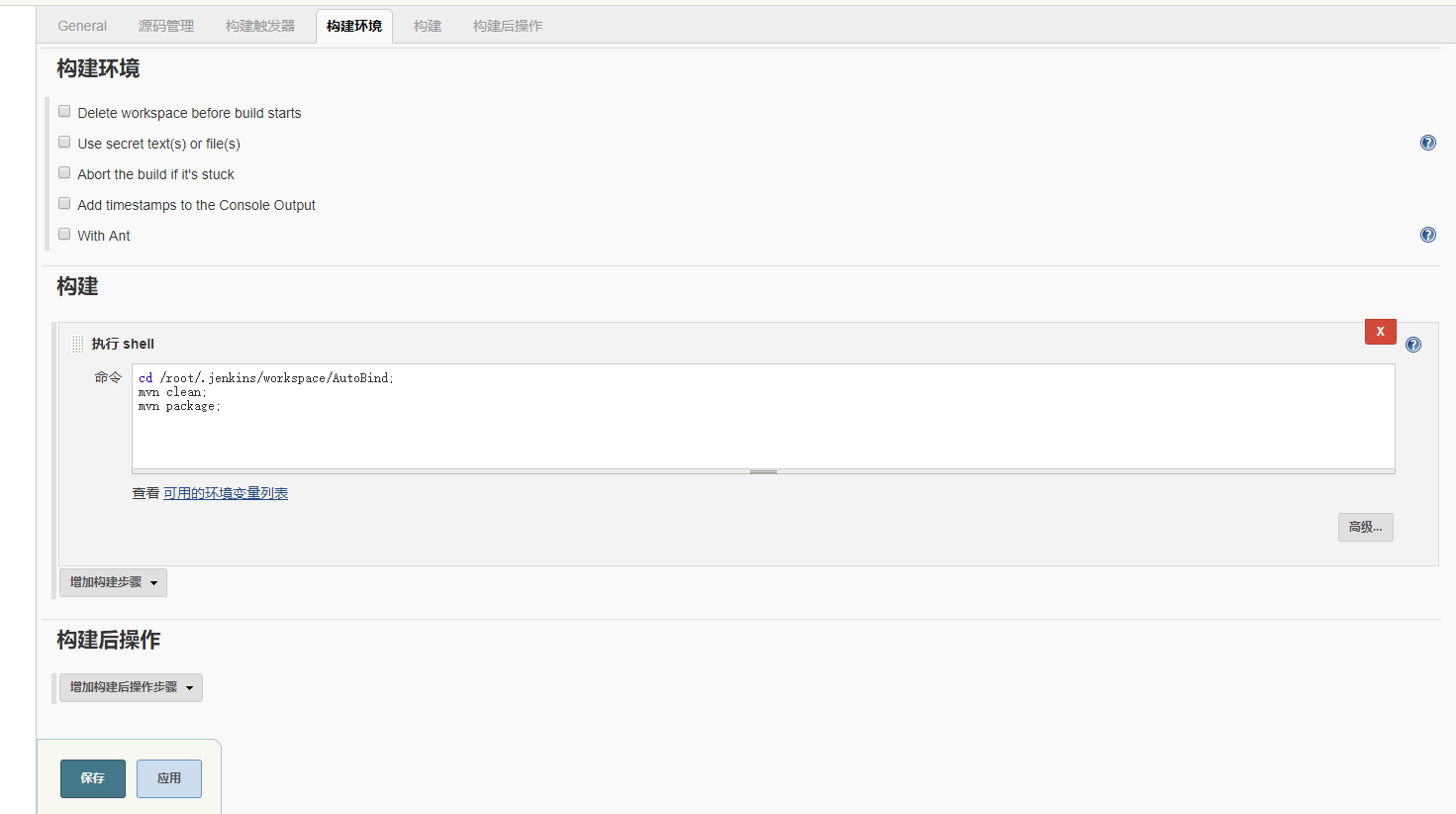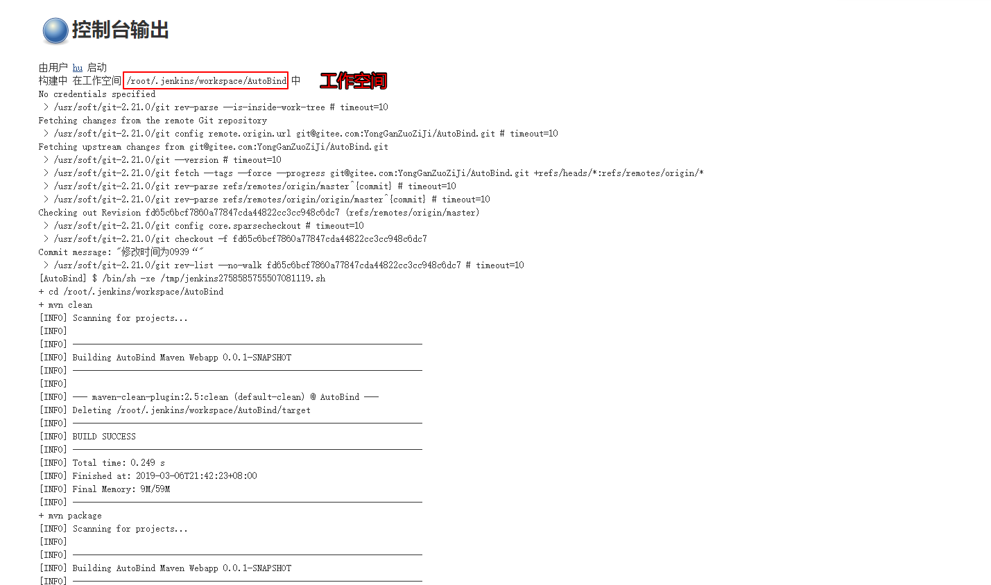 我的任务目录是:/root/.jenkins/workspace/AutoBind,这个目录也称为工作空间