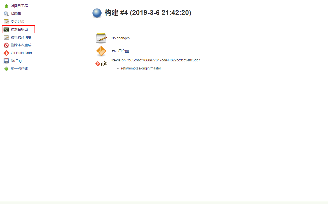 选择构建的项目,然后就可以看到构建的信息。选择左边的控制台输出,里面可以看到构建时打印的日志信息