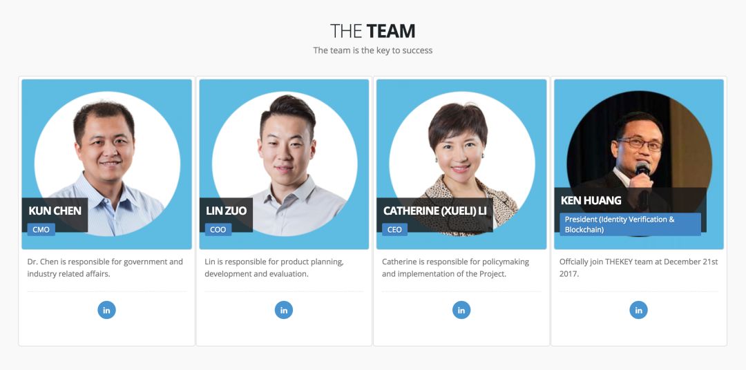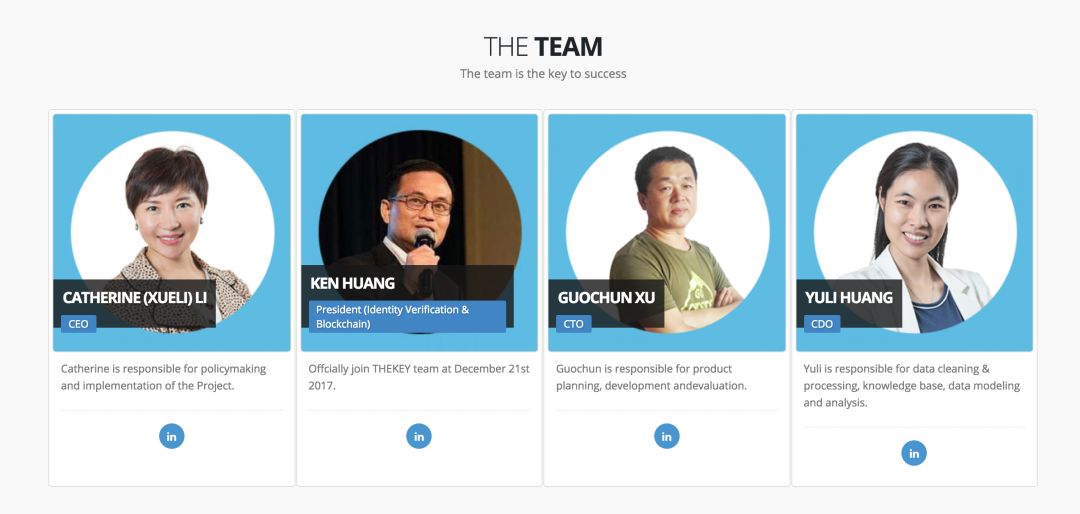 根据白皮书展示,团队成员在传统软件行业取得过卓越成绩,分别在政务、金融、医疗、互联网等领域领导过行业知名项目,并较早向区块链转型,是国内第一代专业的区块链开发者团队。从2015年开始与Hyperledger合作开展联盟链的行业解决方案设计。已经拥有全国第一个区块链电子证照的先发技术和标准优势,去中心化组网、分布式账簿和公私钥机制打通将政务部门之间数据打通,解决安全与隐私的矛盾。THEKEY由拥有区块链,研发和数据科学专业知识的坚实团队支持。这增加了项目的即时可信度,并提高了TKY成功实施的前景。
