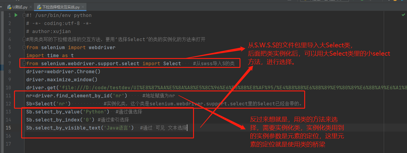 selecte类方法写的下拉框,我们用导入(选择)(大S)类来进行交互