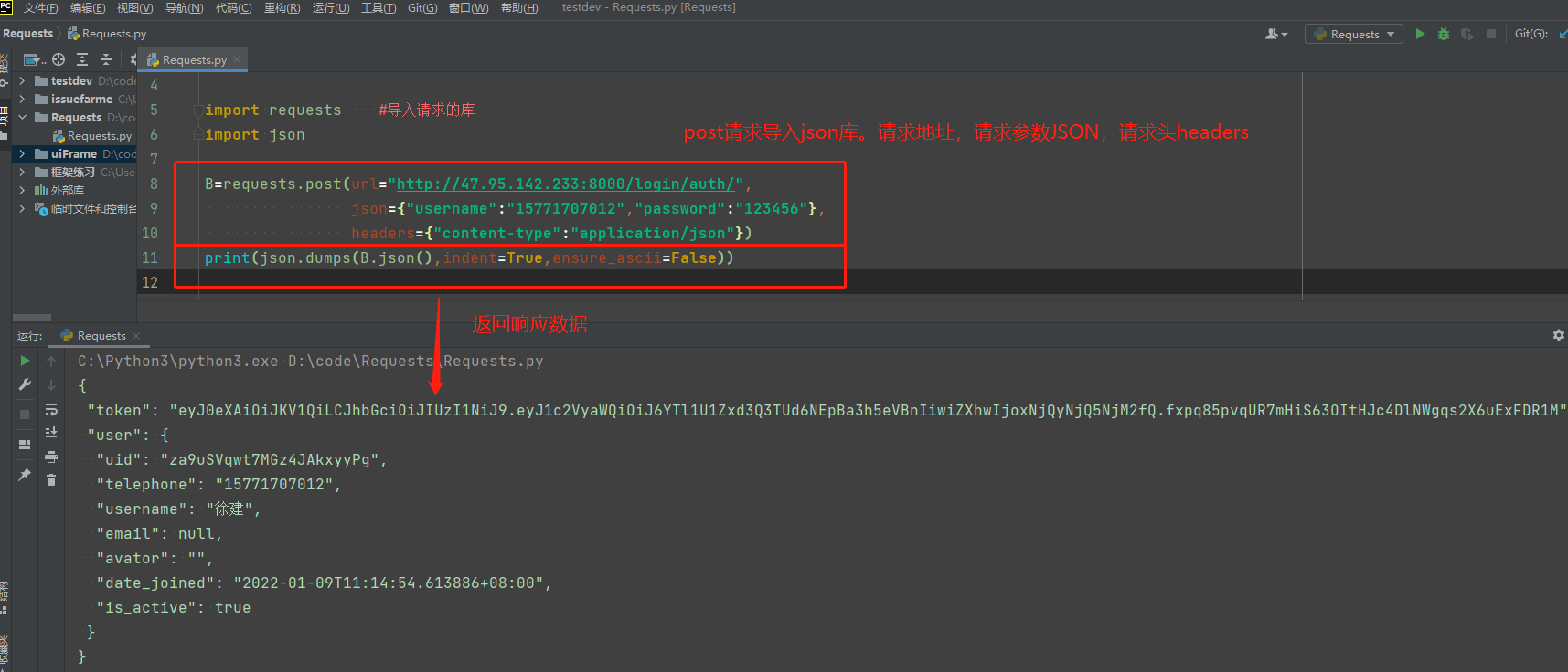 响应数据⼀般使⽤r.text来获取,如果响应数据是JSON格式的,那么使⽤r.json()
