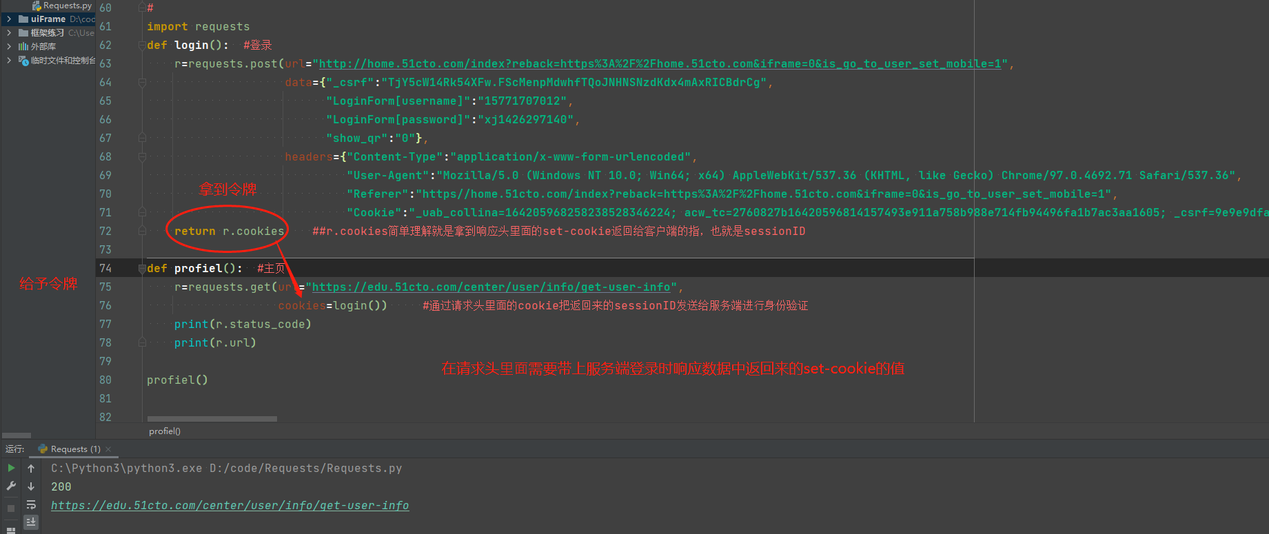 在请求头⾥⾯需要带上服务端的响应头中返回来的set-cookie的值