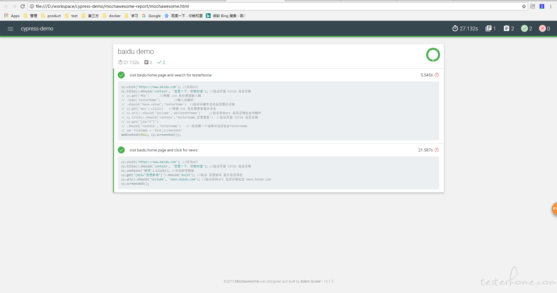 .should('contain','TesterHome') // 验证第一个结果中是否包含TesterHome
