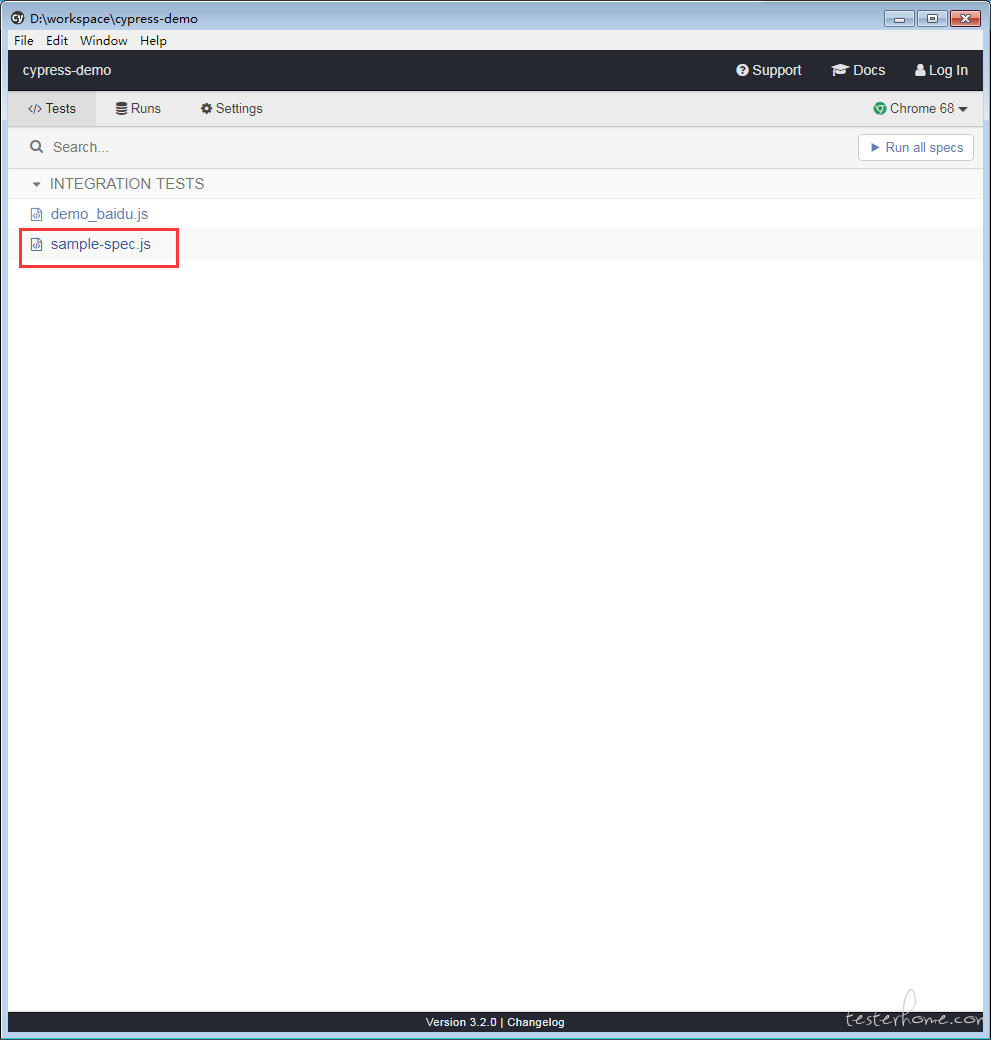 your-project/cypress/intgration 目录下新建 sample-spec.js