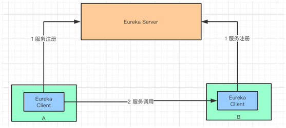 “A”服务和“B”服务首先通过自身集成的 Eureka Client 到 Eureka Server 上注册自身的信息,包括:服务名,地址,端口号等等。
