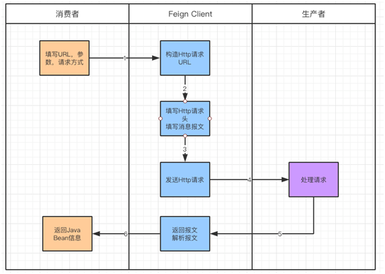 从上图可以看出,“消费者”开始只需要提供“生产者”的 URL,参数等信息。