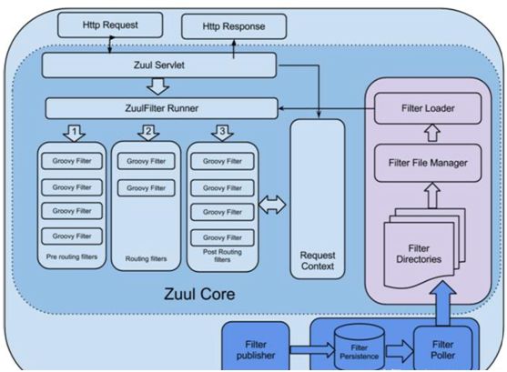 Zuul Filter Runner 接到 Zuul Servlet 的通知以后,会从 Request Context 中取请求的信息,并且交给 Filter Processer 处理,它会维护一套过滤和路由的规则,根据这些规则将请求发送到目标的服务。