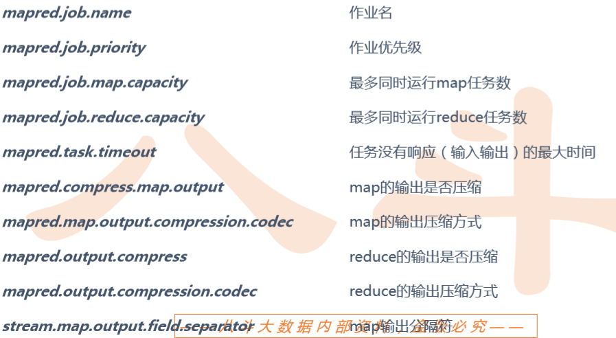 • 输出数据量较大时,可以使用Hadoop提供的压缩机制对数据进行压缩,减少网络传输带宽 和存储的消耗。