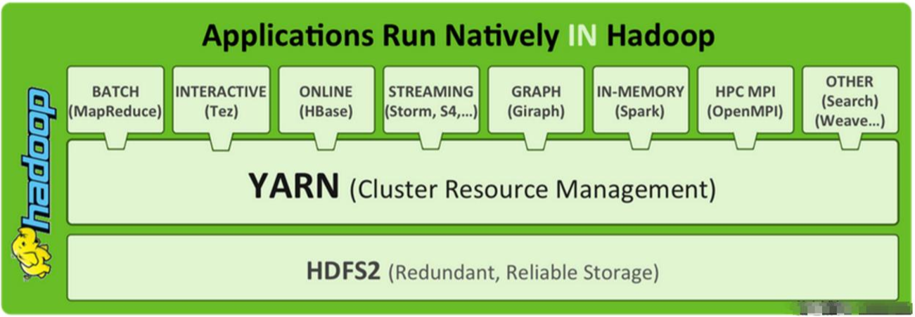 – 不再拥有JobTracker,引入集群管理器,负责跟踪集群中的活动节点和可用资源,并将它们分配给任务