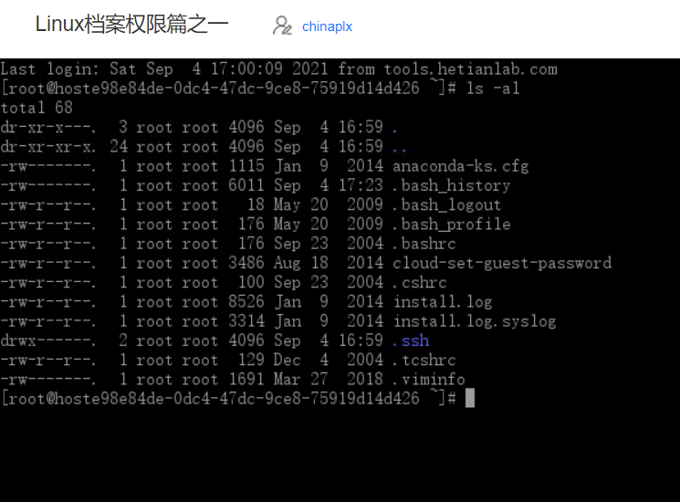 用root登陆系统,ls-al就是将所有的档案的详细权限和属性全部列出来。列出的权限和属性一共有七列。