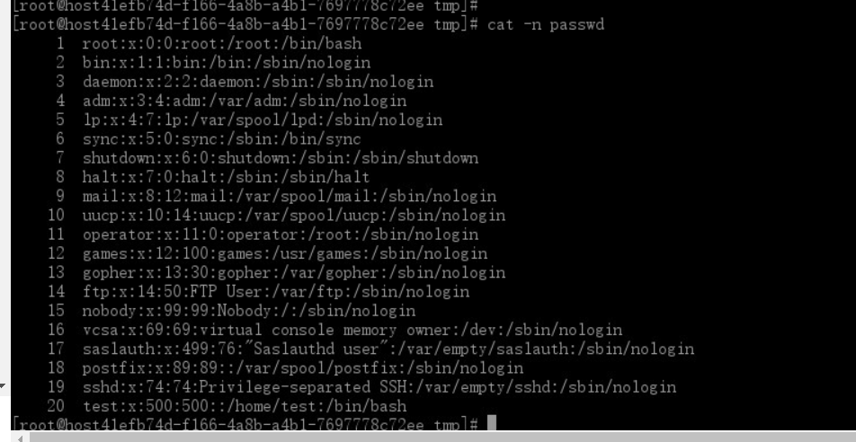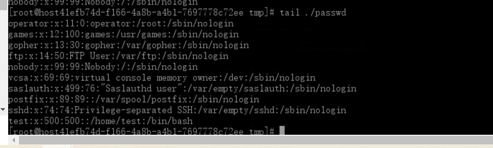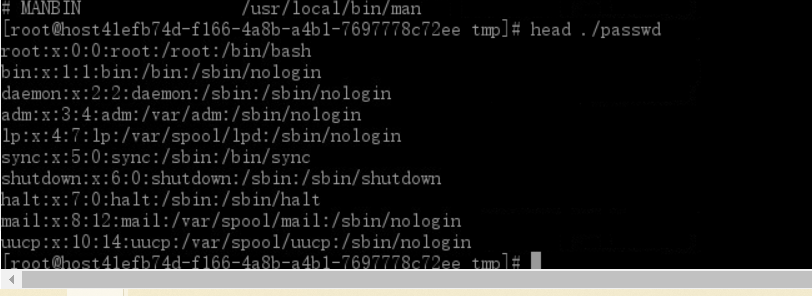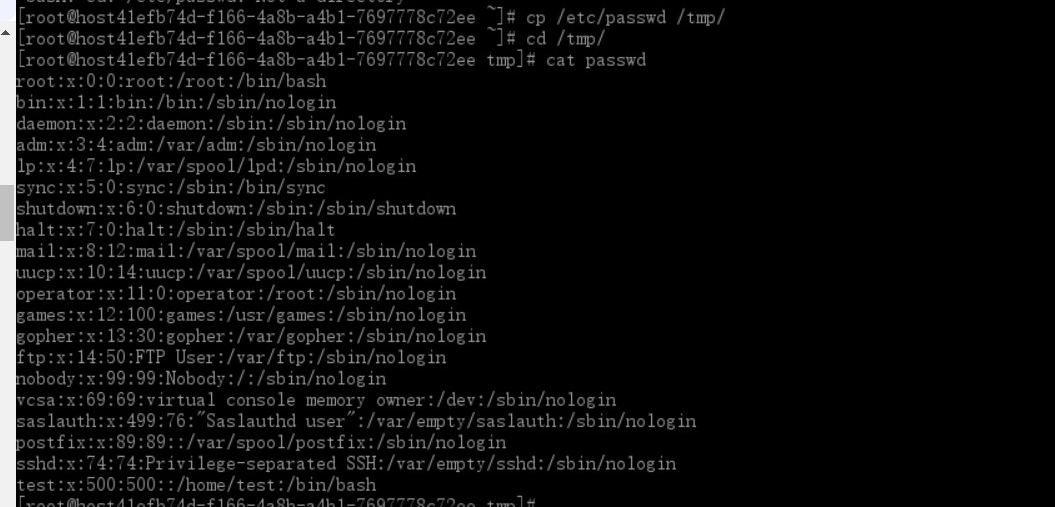 使用cp复制文件passwd,用cat命令查看passwd文件内容