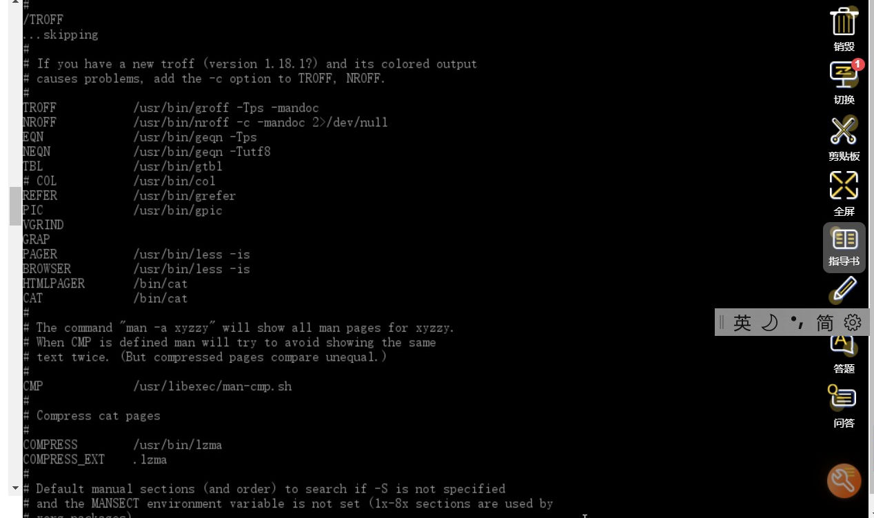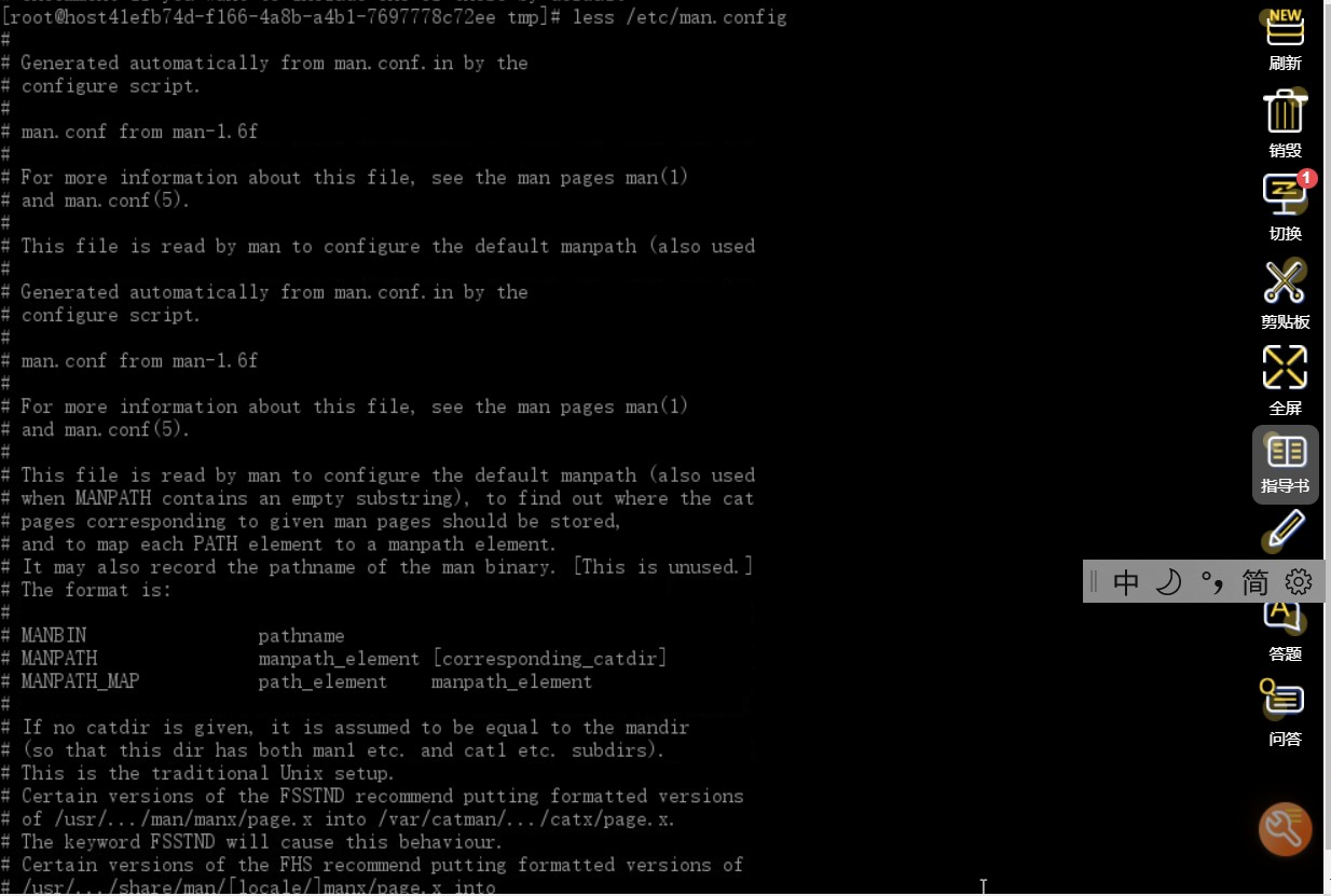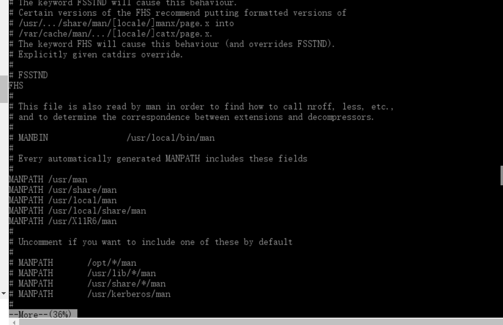 使用more命令显示全部文件,enter 键再向下显示一行,空格键再向下显示一页,q键离开页面(页面左下角会显示文件查看进度)