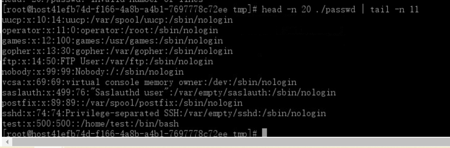 若想使用head和tail命令查看中间部分的文件的内容,直选哦先将文件的头部份读取出来然后使用tail在读取尾部分。