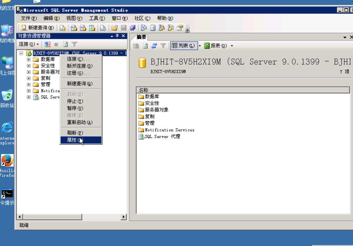 在“对象资源管理器”中,右击服务器,然后单击“属性”。