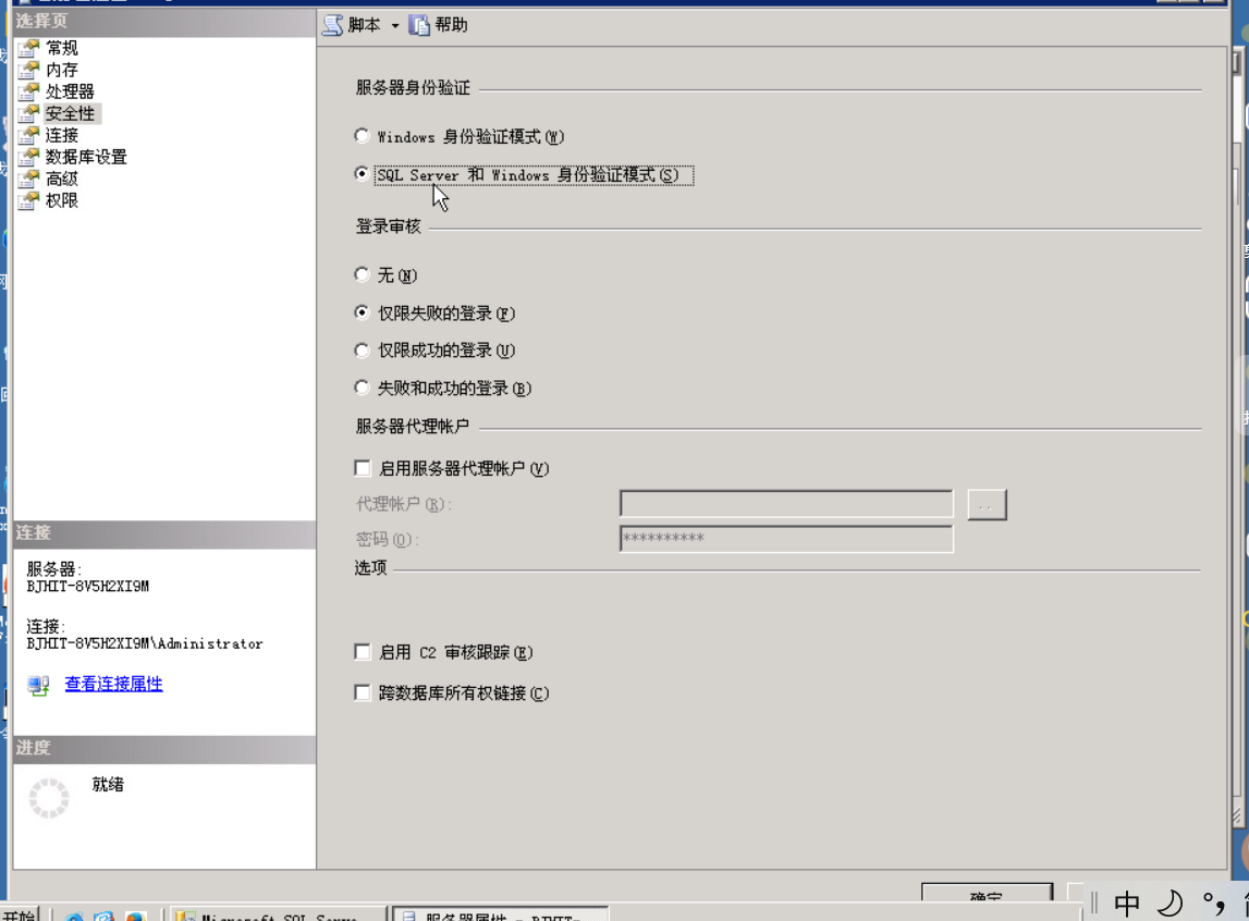 (2)使用SQL Server Management Studio管理SQL Server身份验证的登录帐号。