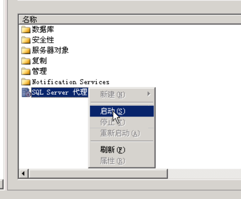 在“摘要”面板中,右击“SQL Server 代理”,然后单击“启动”。
