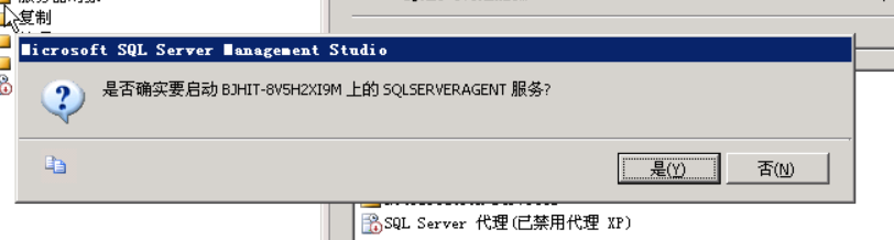 当提示是否确实要启动SQLSERVERAGENT服务时,点击是。