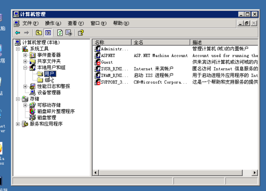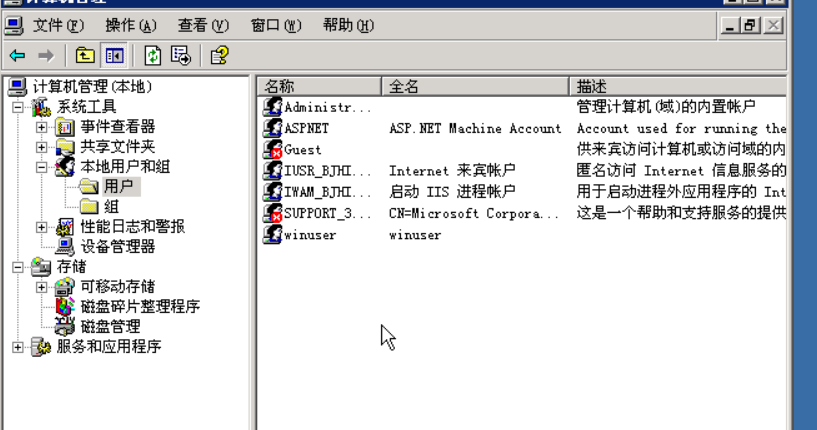 然后展开系统工具-本地用户和组-用户,此时在右边可以看到当前系统中所有的用户。