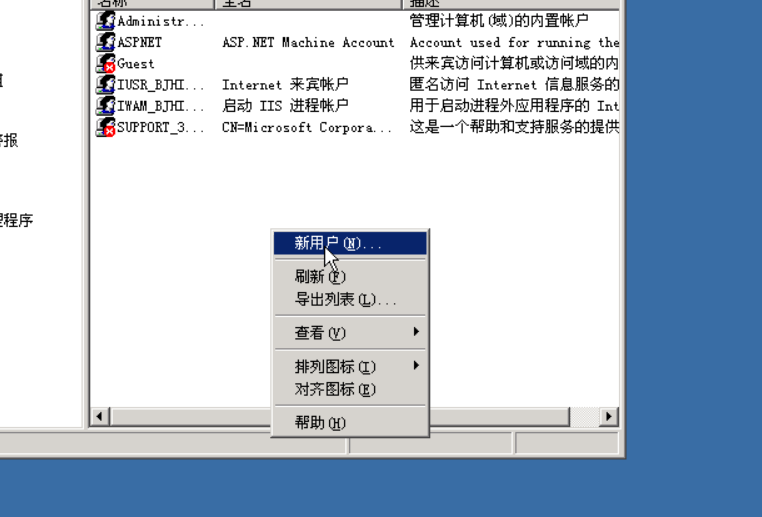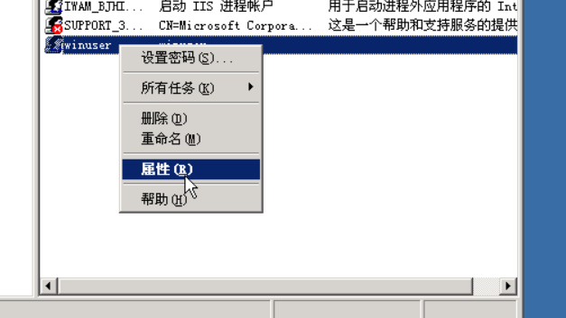 用鼠标右键单击要修改的用户,在系统弹出菜单上单击“属性”