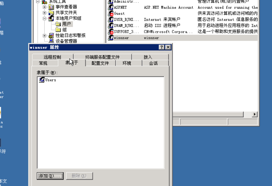 同样点击确定。此时,在winuser属性的隶属于选项卡下可以看到,多了一个administrators。